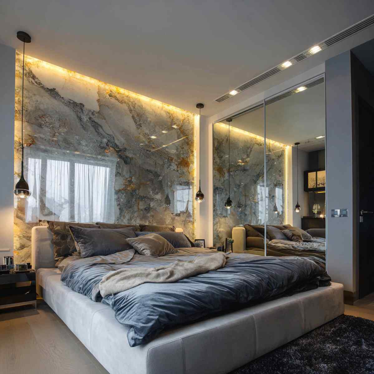 Choose pendants with warm bulbs or interesting designs to make your bedroom feel both cozy and modern.