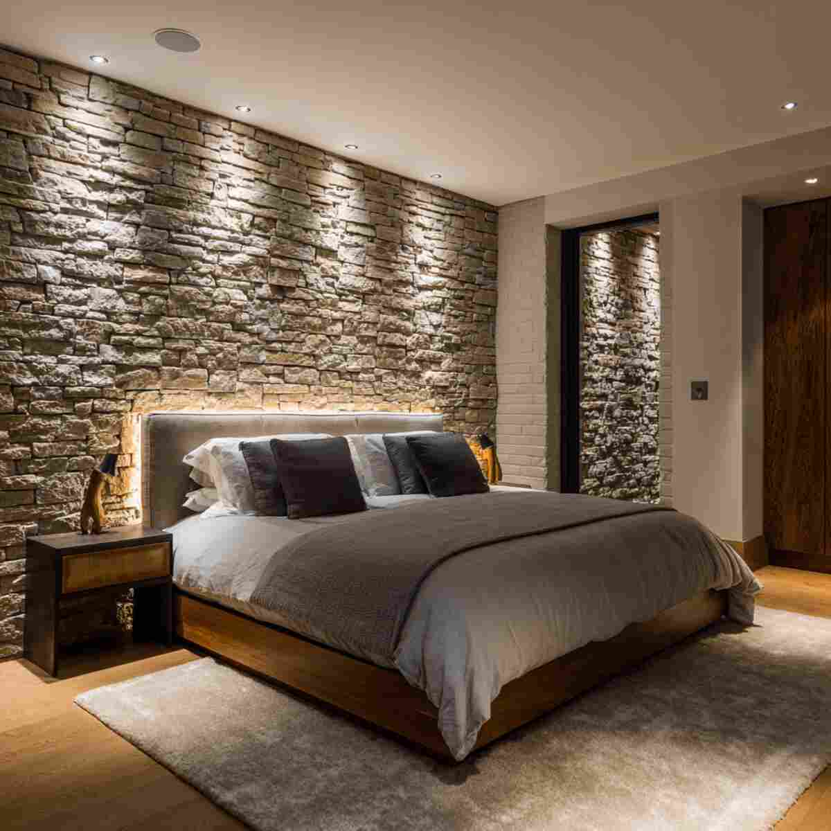 19. Downlights Above a Stone or Wood Feature Wall
