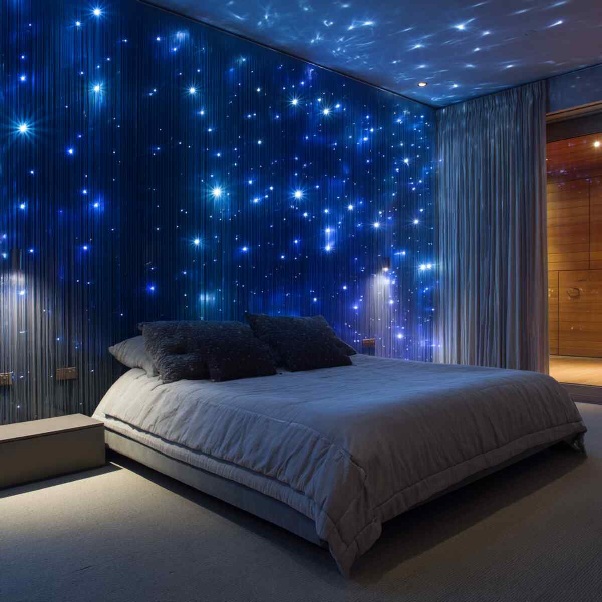 Fiber optic lights turn your accent wall into a starry night sky.