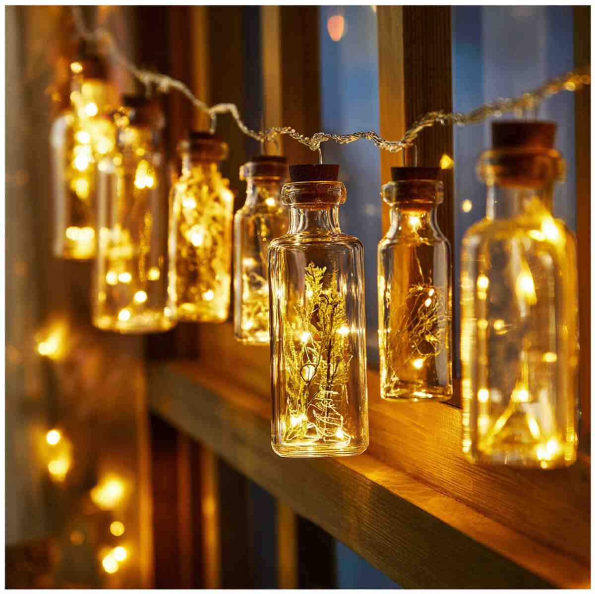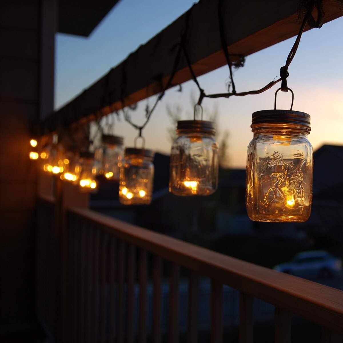 Mason jar string lights provide a rustic and handmade appeal, especially when filled with fairy lights or small bulbs. They look stunning when hung along balcony railings or hooks.