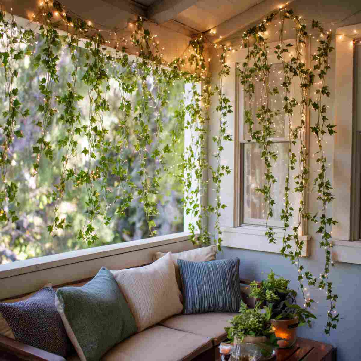 Fairy vine string lights with leaves combine greenery and lighting for a natural yet magical look. They blend perfectly with potted plants and balcony railings.