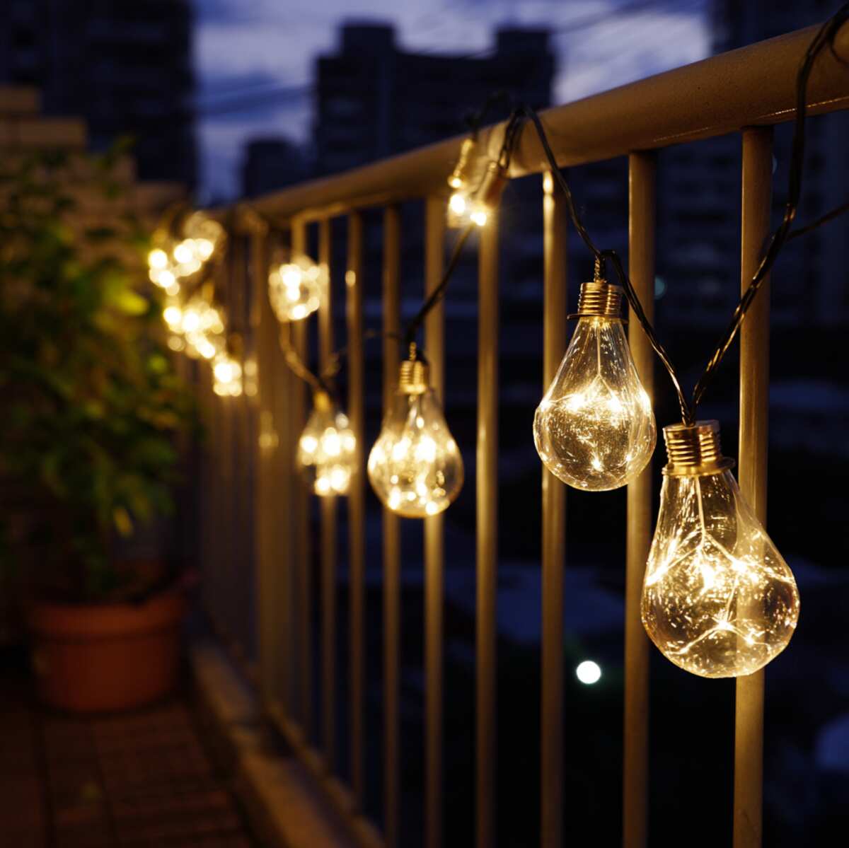 Solar-powered string lights are an eco-friendly way to keep your balcony bright without increasing electricity bills.