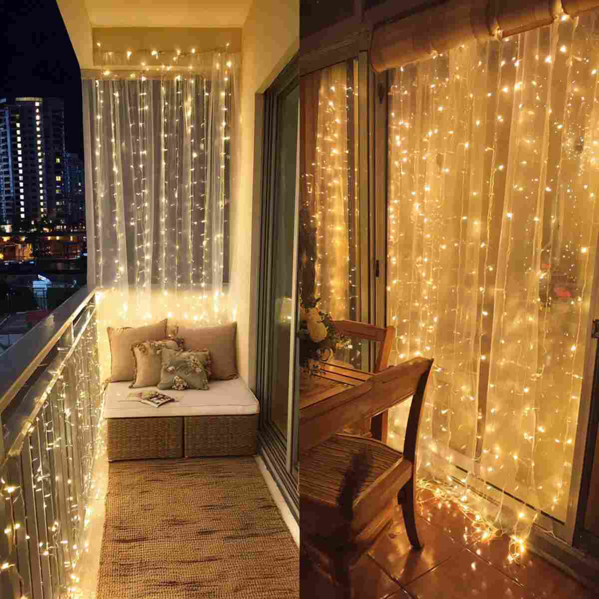 Solar fairy curtain lights with a timer add beauty and convenience to your balcony. They automatically light up at dusk and turn off after a set time.