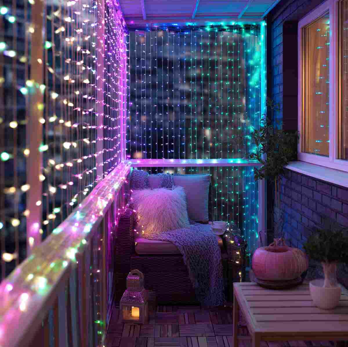 Color-changing LED string lights bring a fun and modern touch to your balcony. You can switch between colors to match moods, seasons, or celebrations.