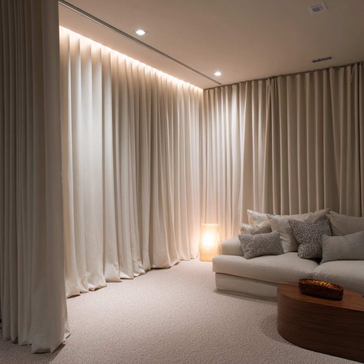 Soundproof curtains are thick and designed to reduce noise between basement sections. They are especially helpful if you want to separate a music or entertainment area from a study or guest room.