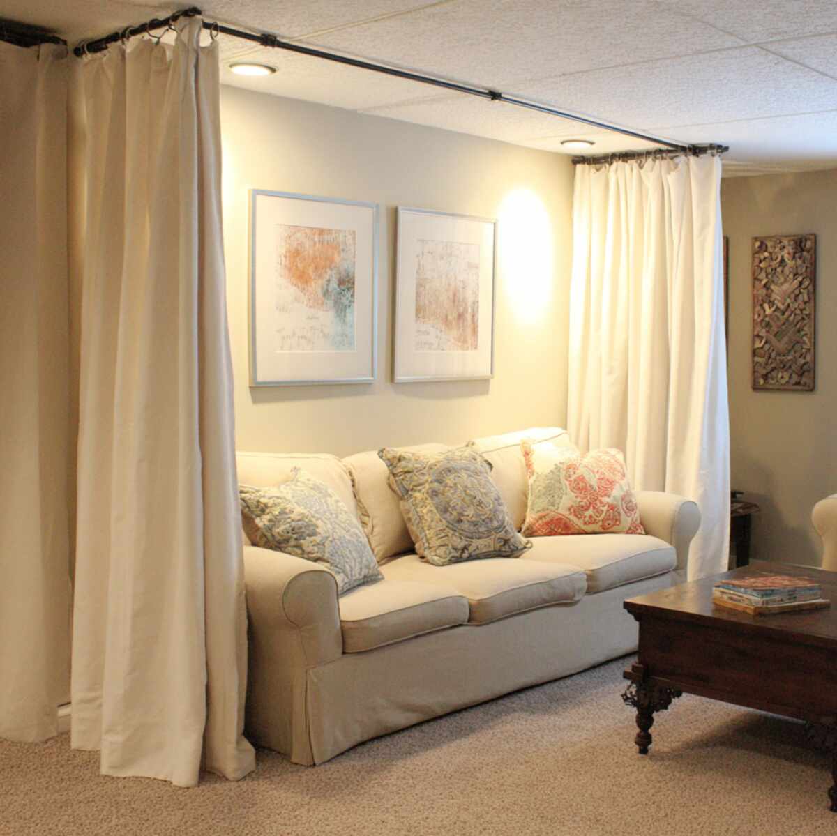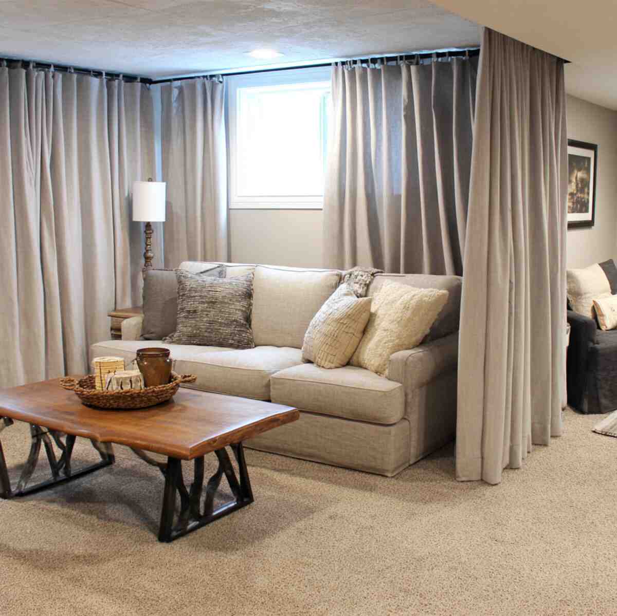 These Basement Divider Curtain Ideas are great for making the space feel cozy and inviting.