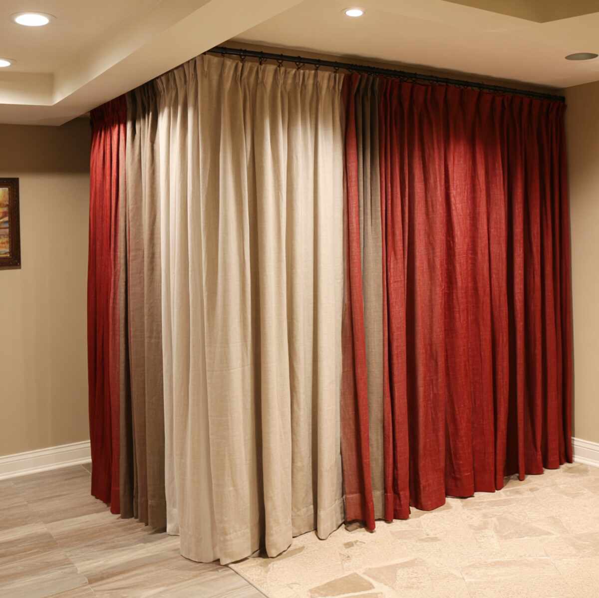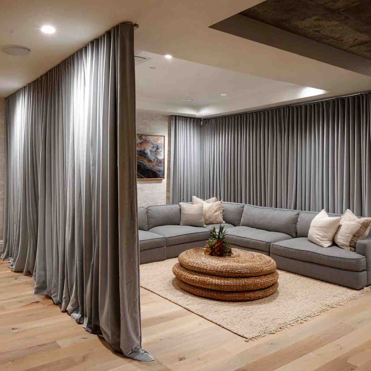 This is one of the best Basement Divider Curtain Ideas if you want both function and a touch of elegance.