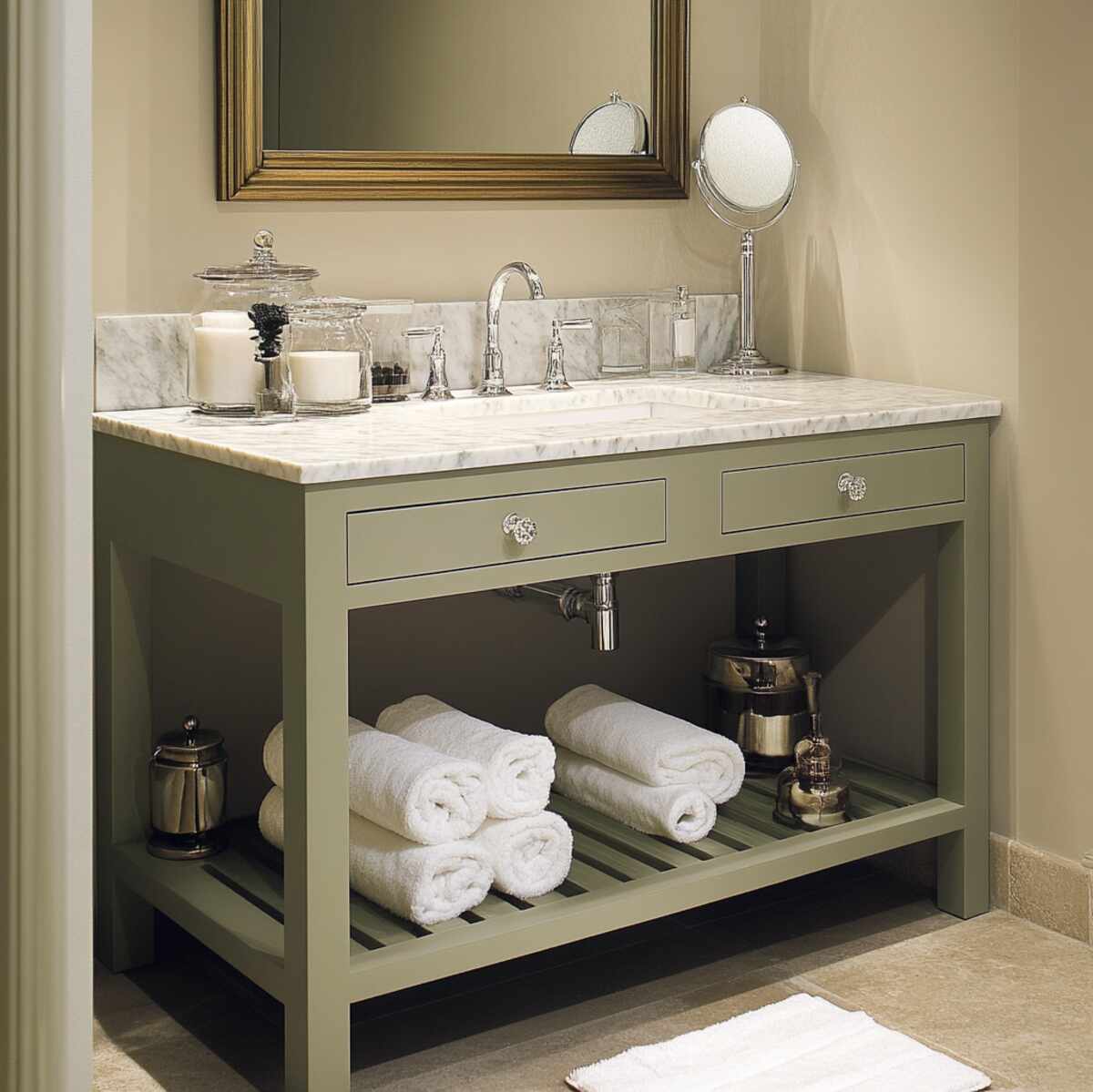 Bathroom Vanity Open Shelf Ideas make it easy to keep your bathroom organized while adding style and personality.