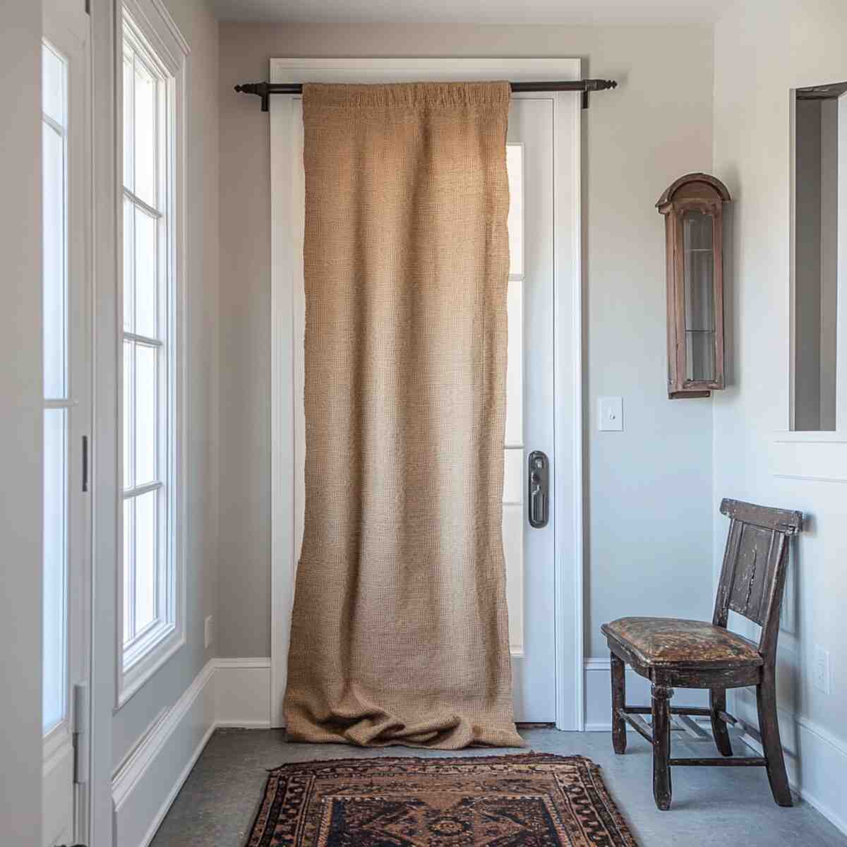 Burlap curtains give a natural and warm feeling, making them perfect for rustic Bedroom Door Curtain Ideas.