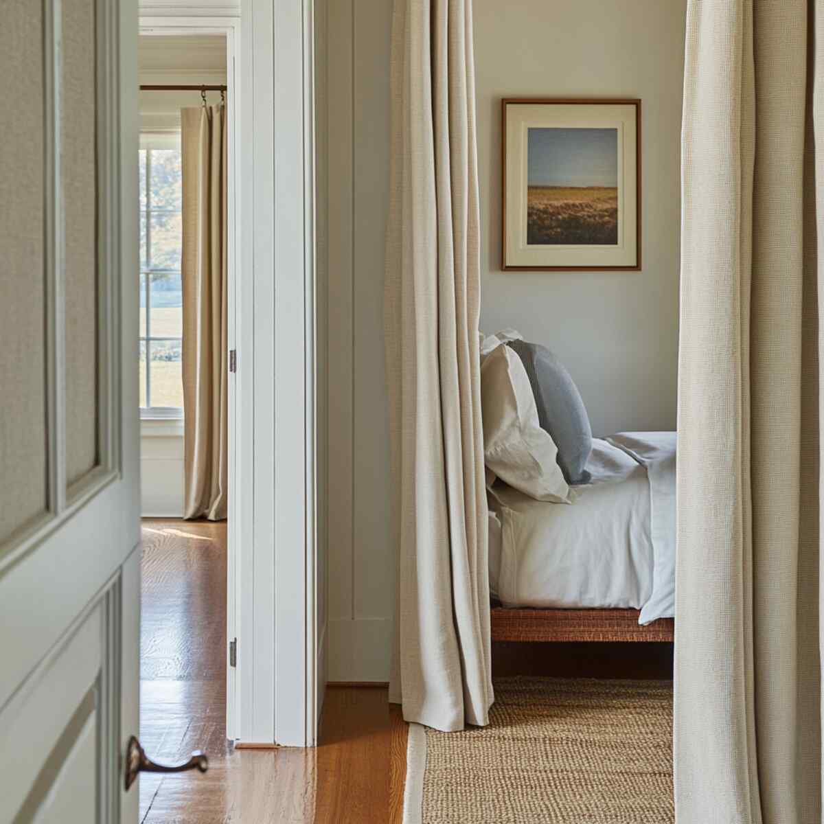 Their airy texture helps regulate brightness without feeling too heavy. They’re especially great if you want a relaxed but stylish look around your bedroom door.