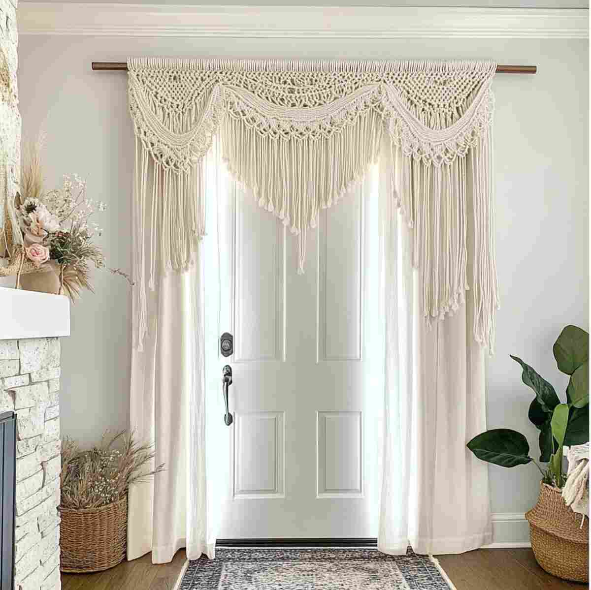 A macramé curtain adds personality and handmade charm, which is why it stands out among Bedroom Door Curtain Ideas. Its knotted design gives a bohemian and artistic feel to your bedroom entry.