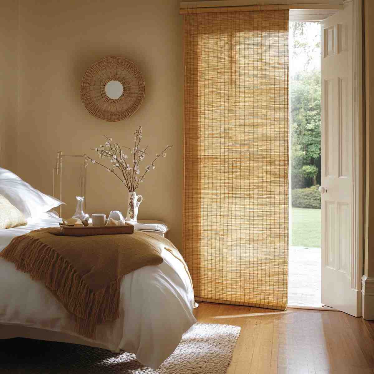 Bamboo roll-up curtains bring a natural charm that fits perfectly with eco-friendly Bedroom Door Curtain Ideas.