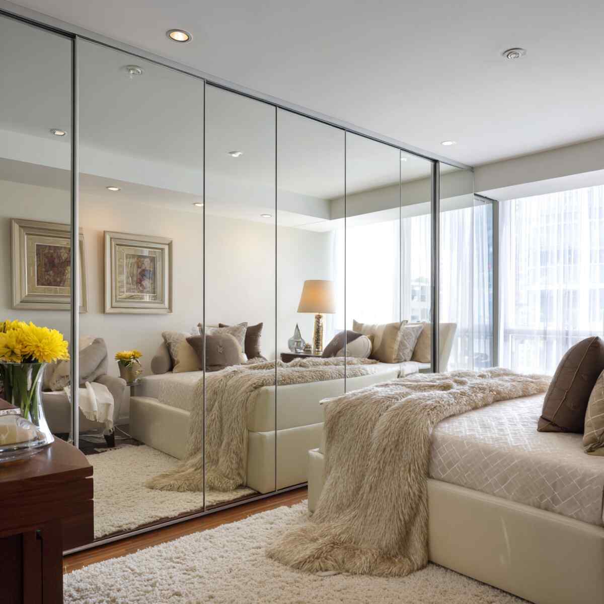 Mirrored sliding doors are one of the most popular Bedroom Sliding Door Closet Ideas because they combine storage with function.