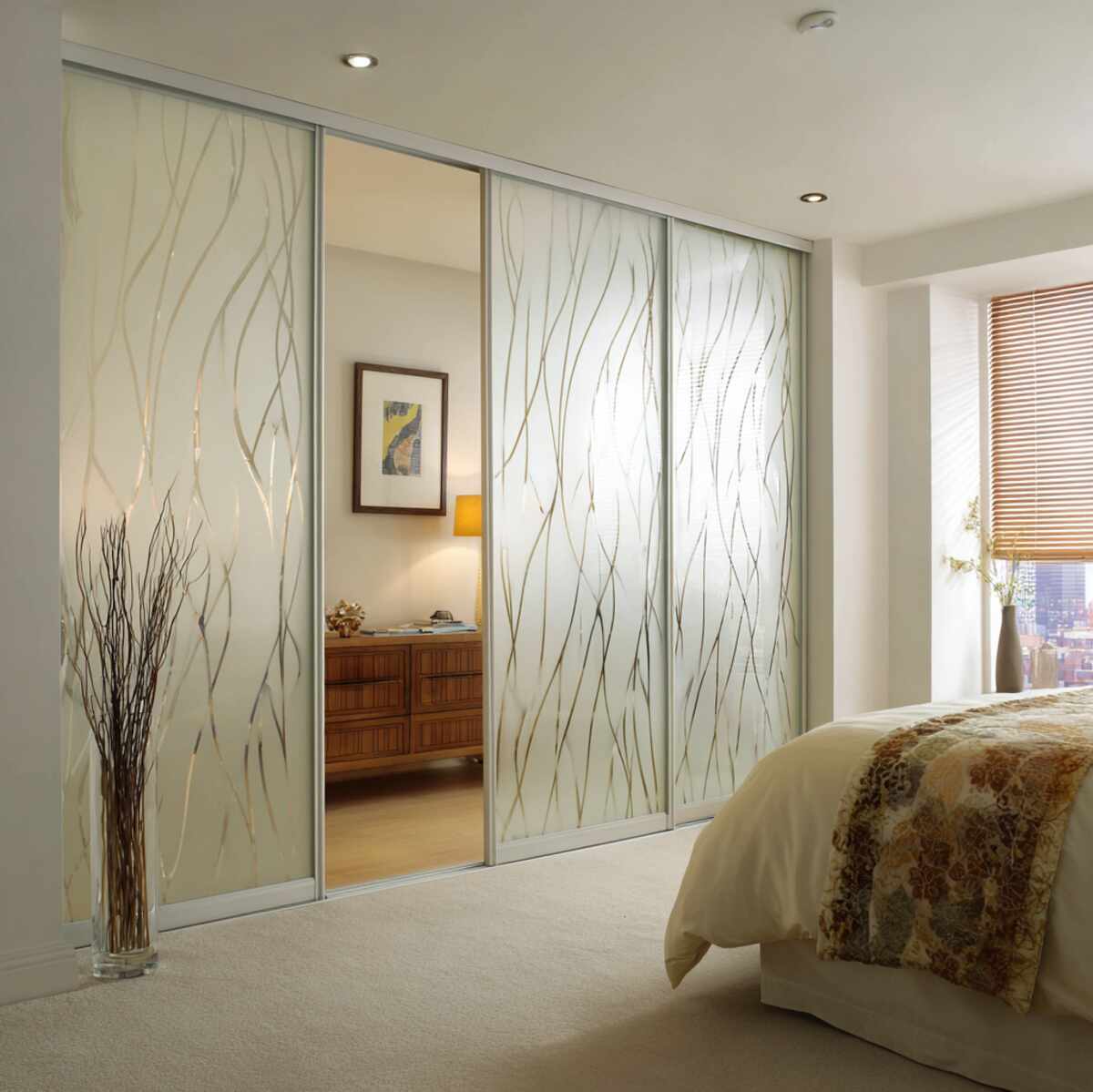 As a Bedroom Sliding Door Closet Idea, it keeps things hidden but stylish. The patterns can range from subtle etching to bold designs depending on your taste.