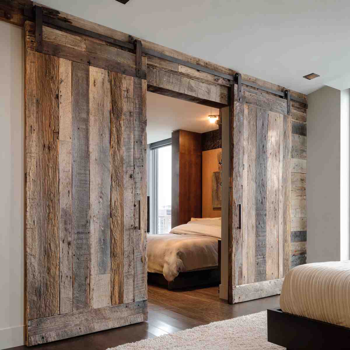 Rustic reclaimed wood sliding doors bring character and eco-friendly charm into your bedroom.