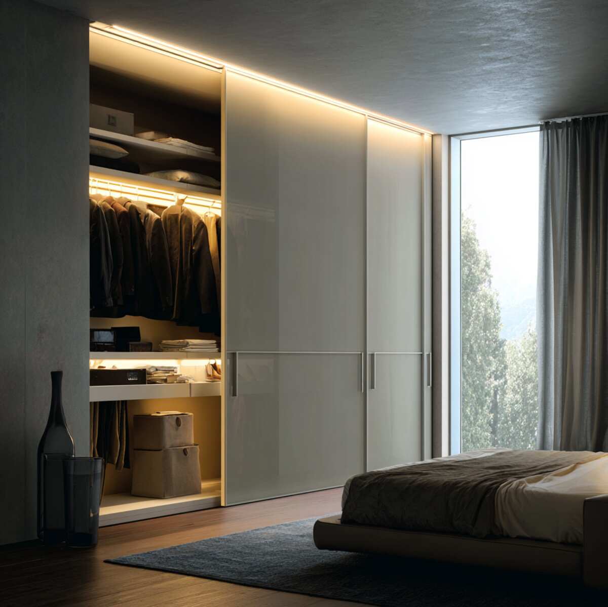 Sliding doors with integrated lighting make the closet more functional and stylish.