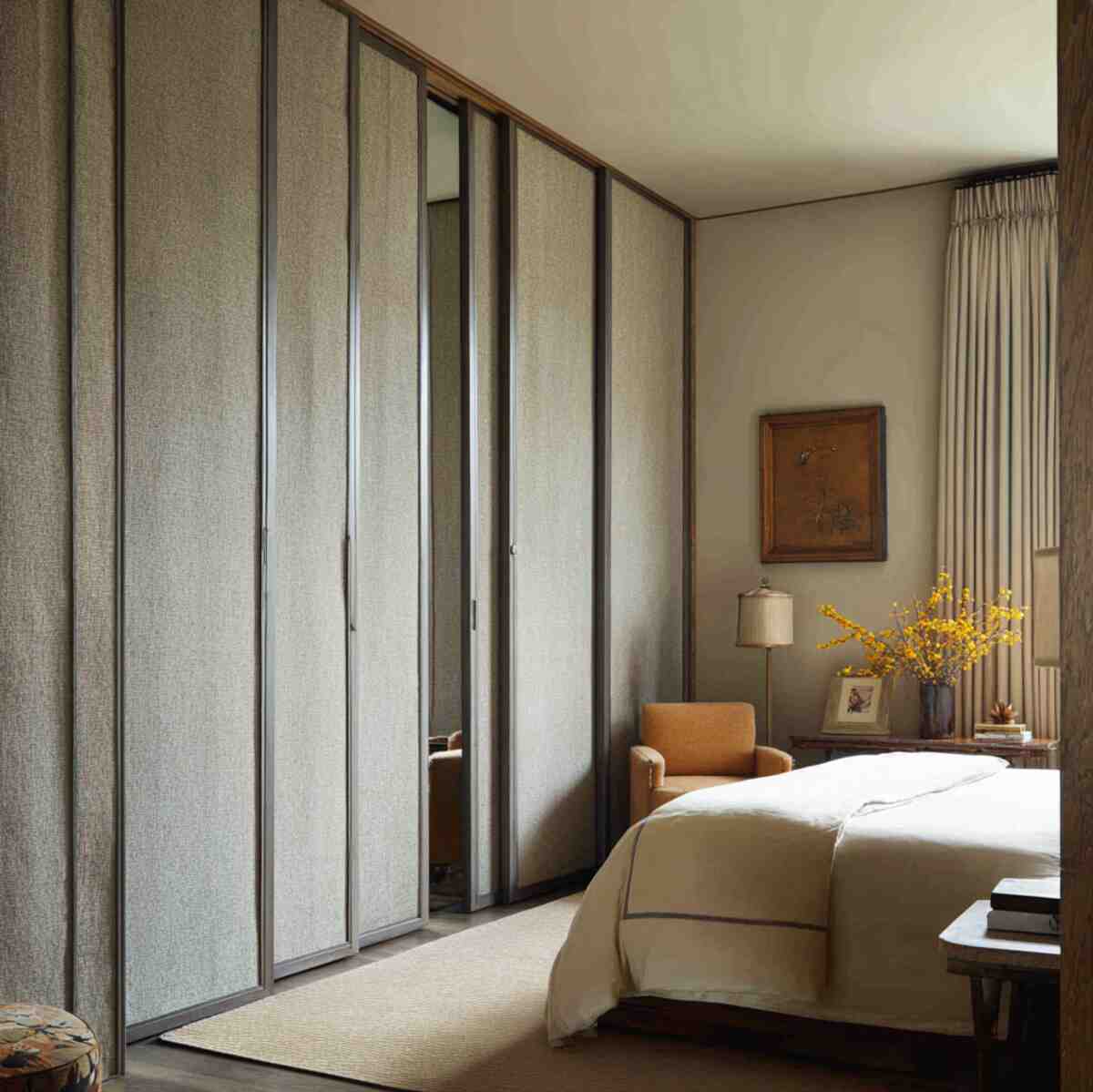 Fabric-covered sliding doors bring a soft and cozy feel into the bedroom. As a Bedroom Sliding Door Closet Idea, they add texture and warmth while still saving space.