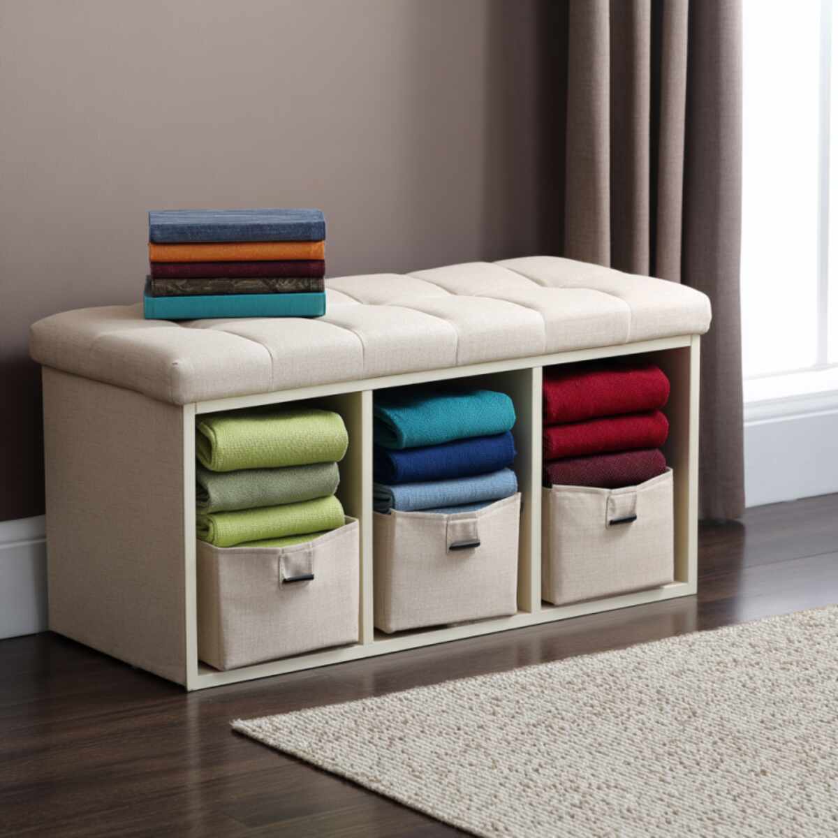 Storage Bench with Fabric Bins