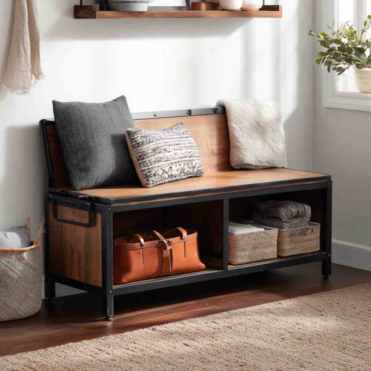 Industrial-Style Metal and Wood Storage Bench