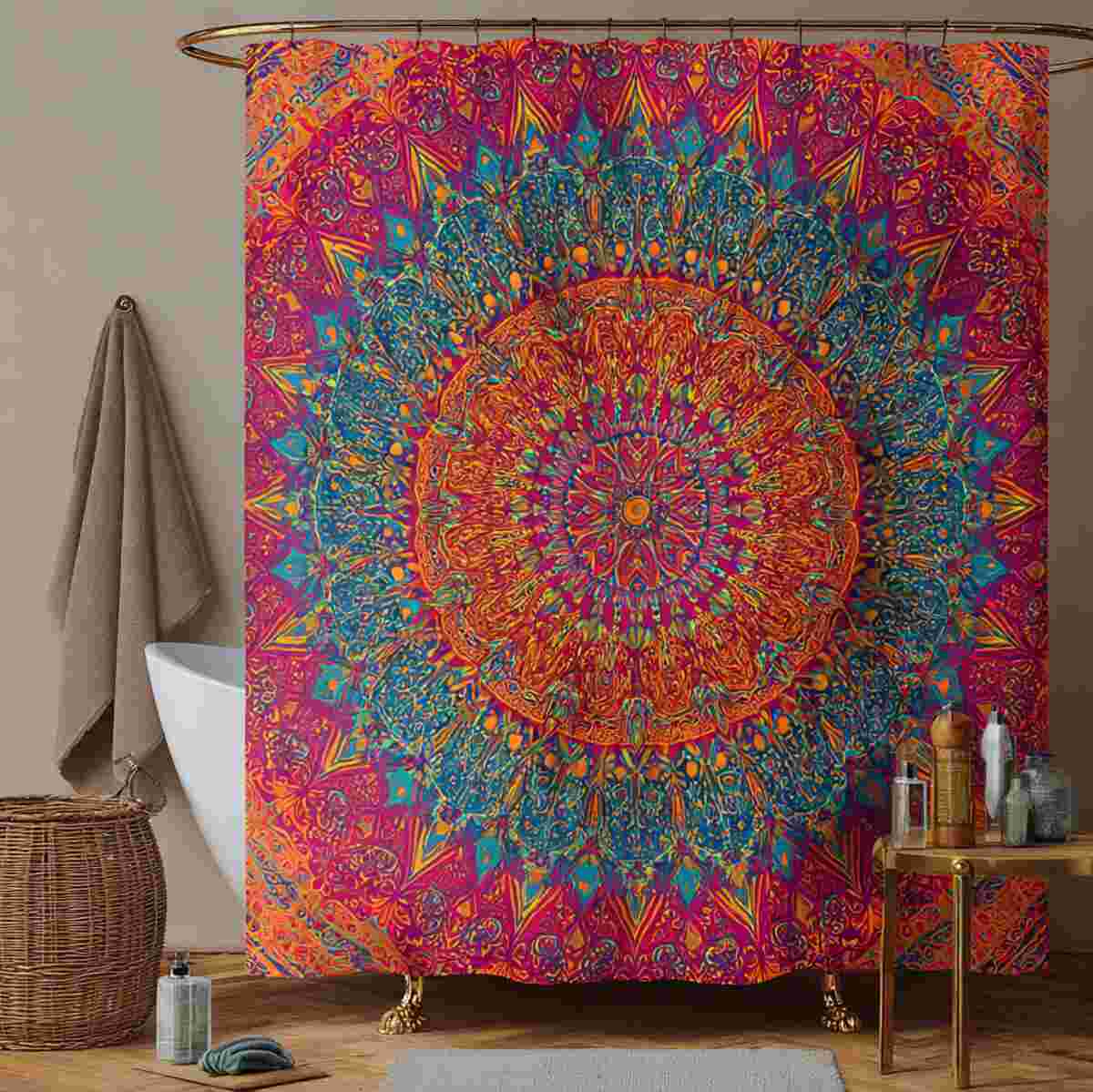 Bohemian mandala designs are colorful and intricate, making them ideal Bold Pattern Shower Curtain Ideas for creative, free-spirited spaces.