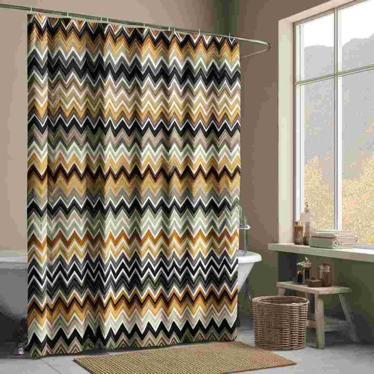 The chevron pattern is a classic choice among Bold Pattern Shower Curtain Ideas for its eye-catching symmetry and energetic flow.