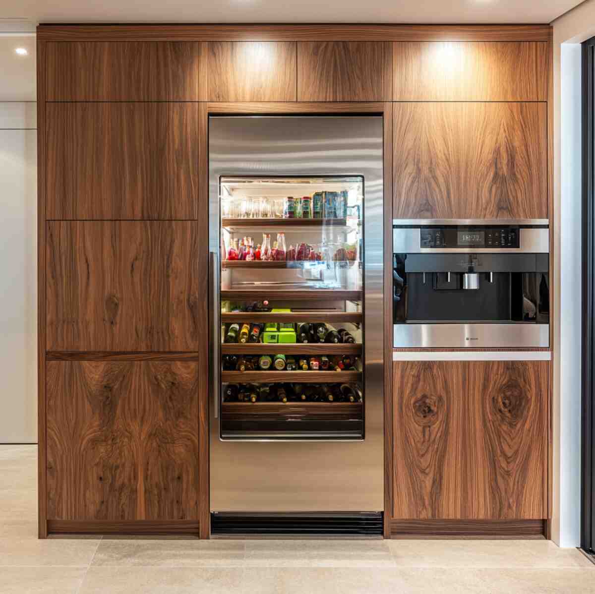 The doors can fully conceal the appliance, making the space feel more open and less cluttered. This is one of the most innovative Built-In Fridge Cabinet Ideas for homeowners who want a completely integrated look.