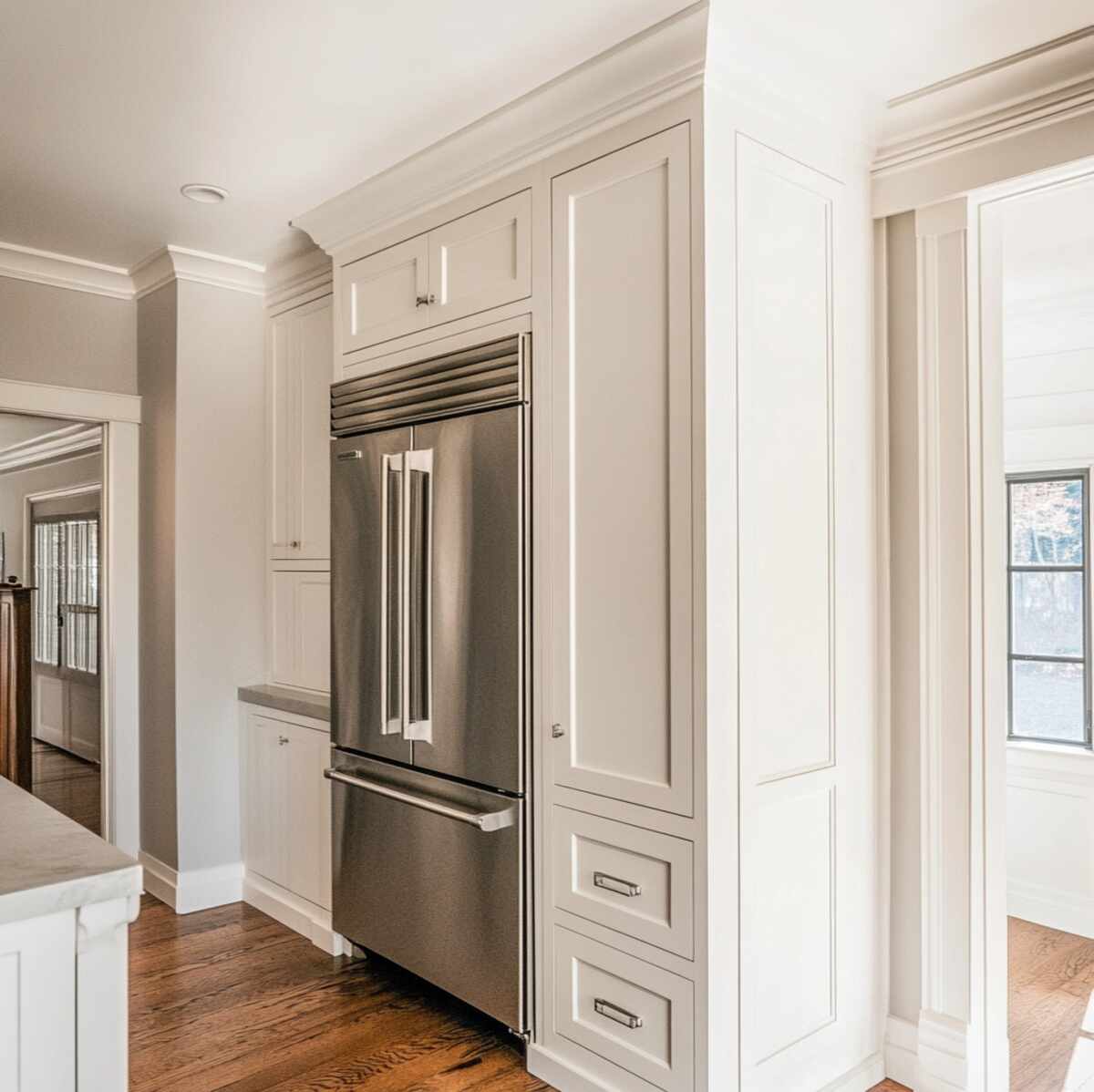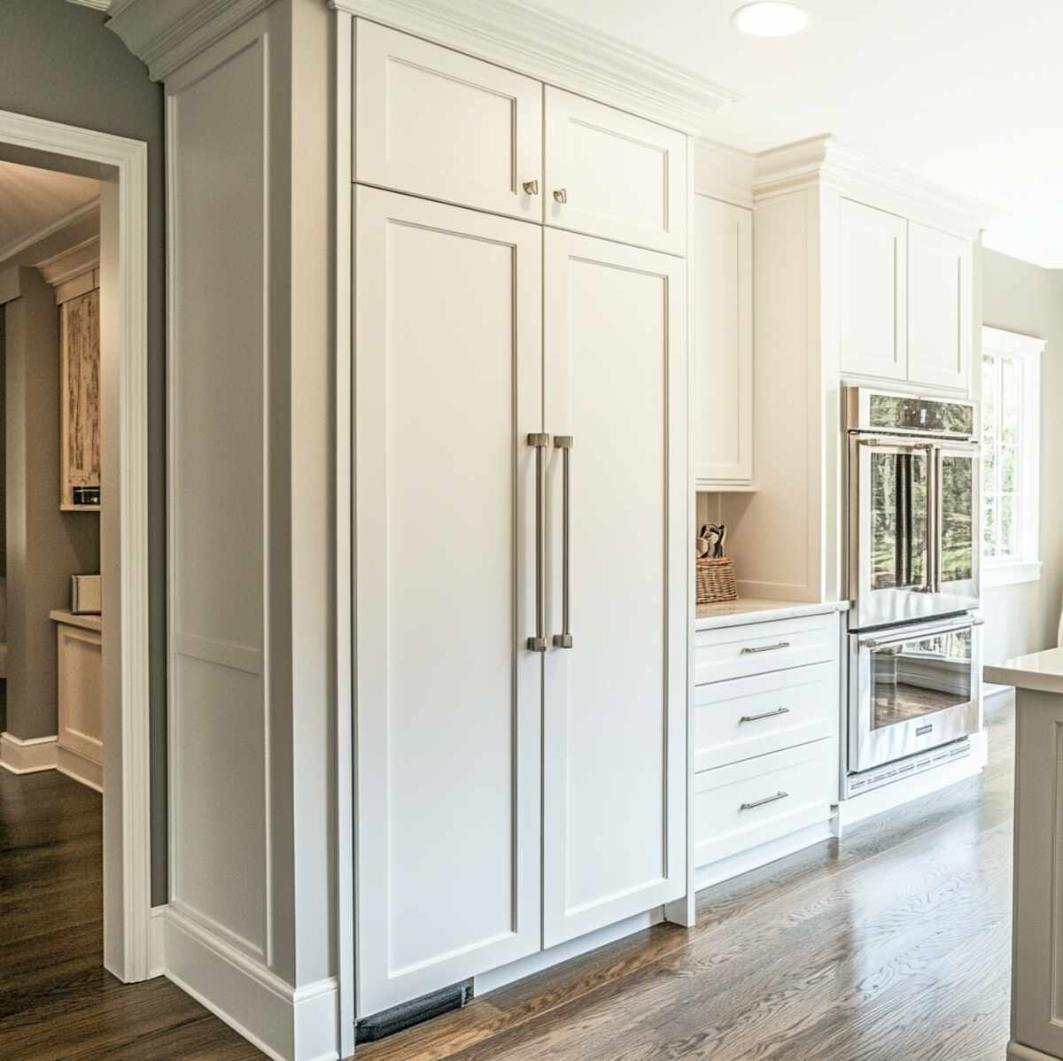 A custom shaker-style enclosure adds classic charm while still giving your fridge that built-in presence. The clean panel design works in both traditional and modern kitchens, making it versatile.