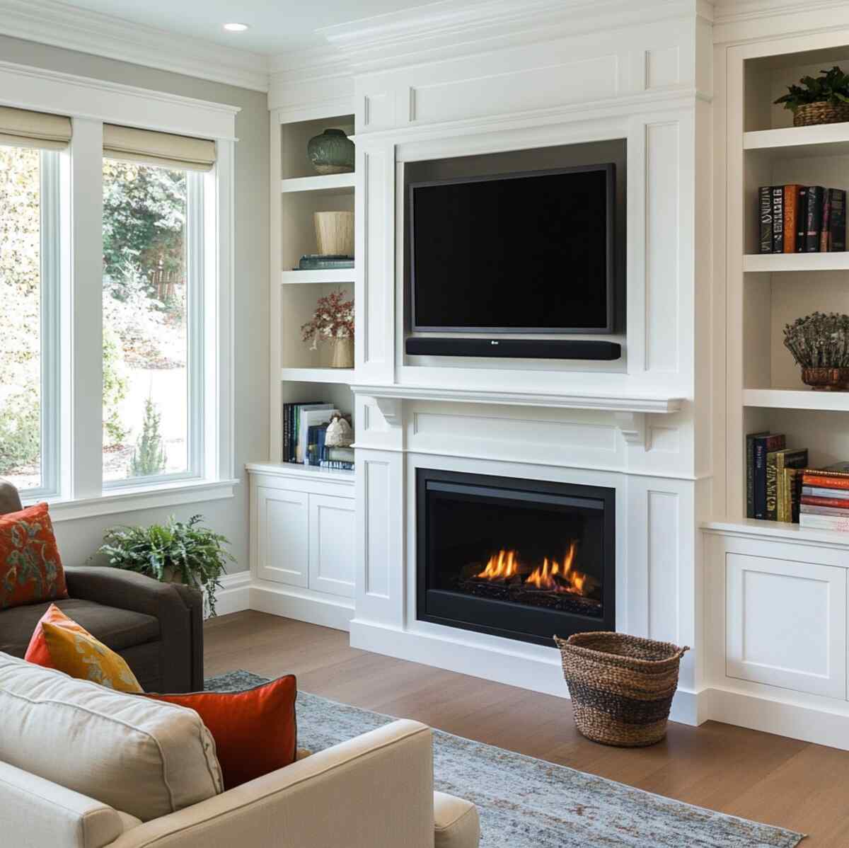 They are one of the most functional Built-In Wall Niche Ideas for Living Rooms since they help balance the fireplace visually. These niches make it easy to showcase décor, logs, or personal items in a tidy way.