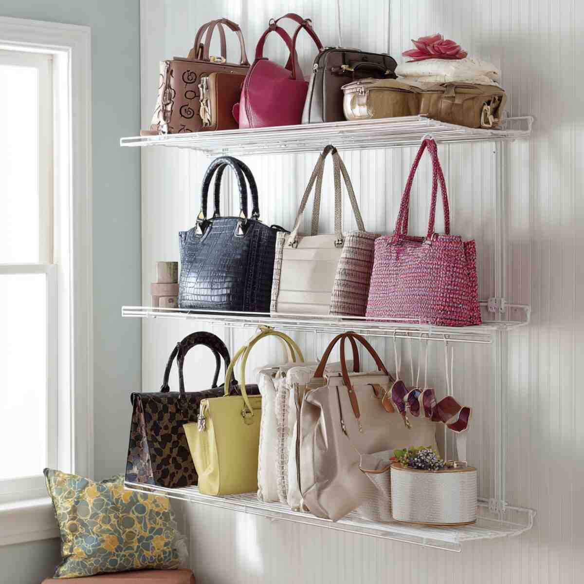 Handbag organizers are dedicated Closet Hanging Shelf Ideas that prevent bags from losing shape.