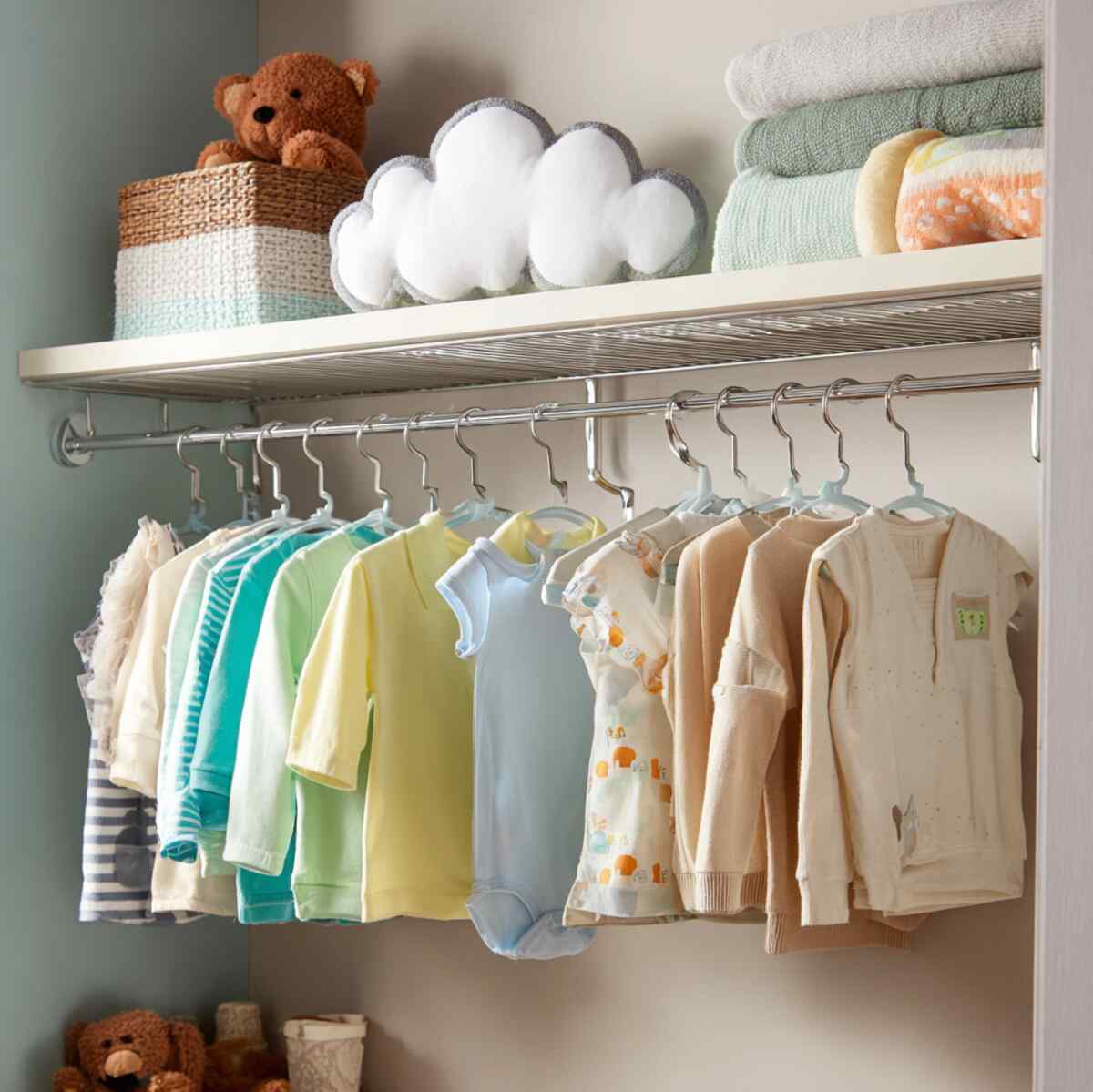 Kids-focused units are practical Closet Hanging Shelf Ideas designed at accessible heights.