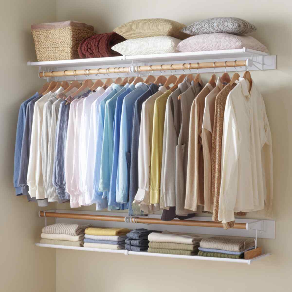 Heavy-duty options are strong Closet Hanging Shelf Ideas built to hold bulky or heavier items.
