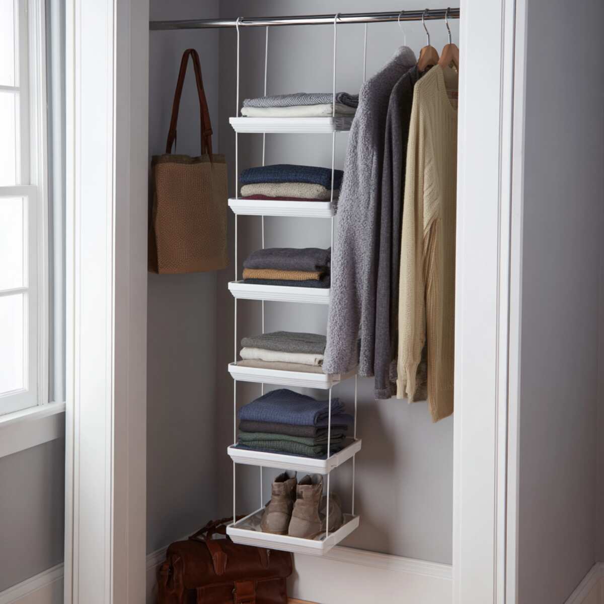 These Closet Hanging Shelf Ideas are important because they provide temporary or portable storage without sacrificing organization.