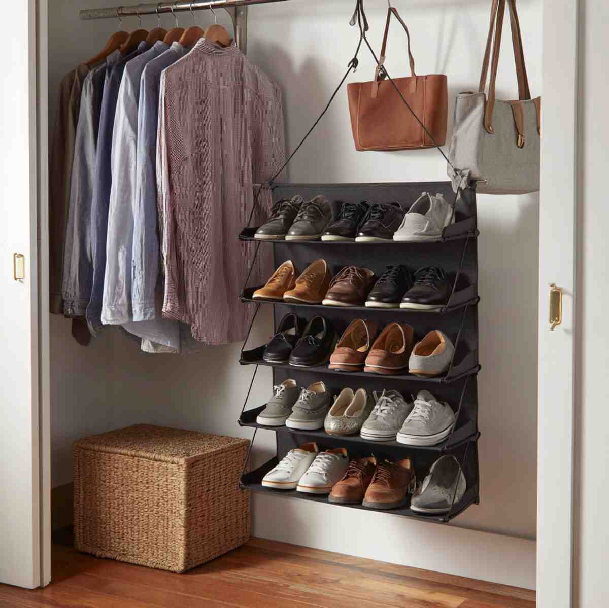 Shoe organizers are specialized Closet Hanging Shelf Ideas that keep footwear off the floor and neatly arranged.