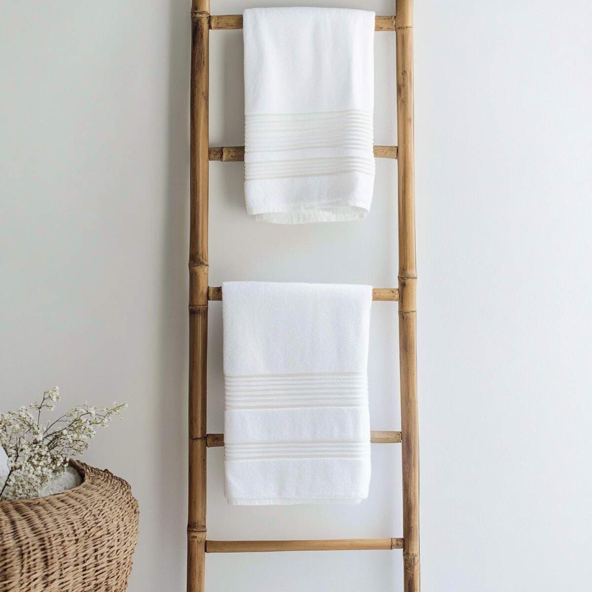 A wall-mounted ladder rack is a stylish and space-saving option for your bathroom.