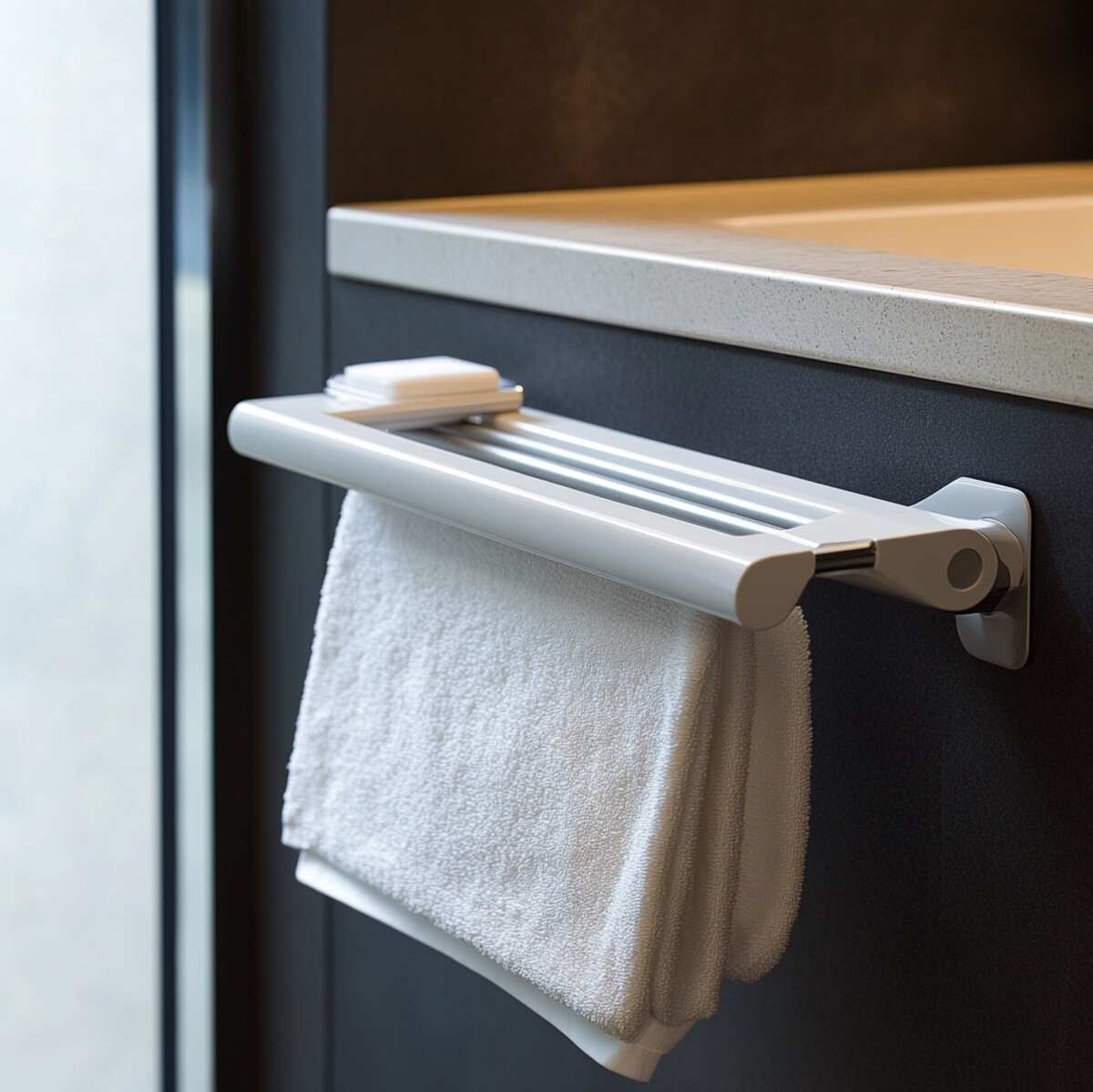 Retractable towel bars can be pulled out when needed and pushed back against the wall afterward. They save space while providing flexible towel storage.