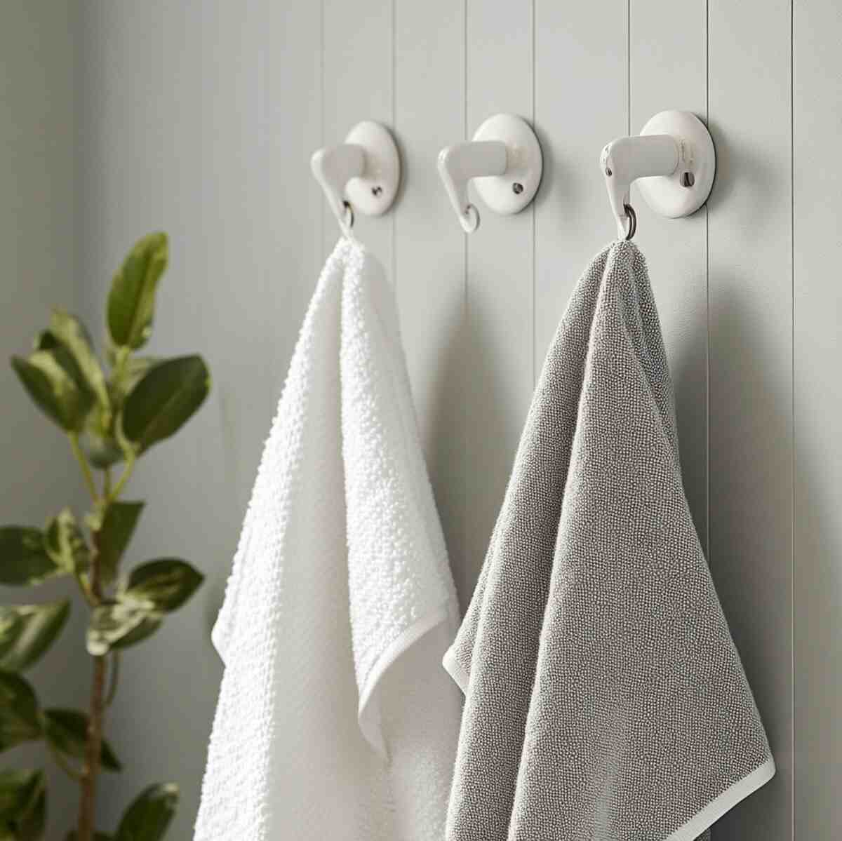Suction-cup towel hangers attach to tiles or glass surfaces without drilling, making them ideal for temporary solutions.