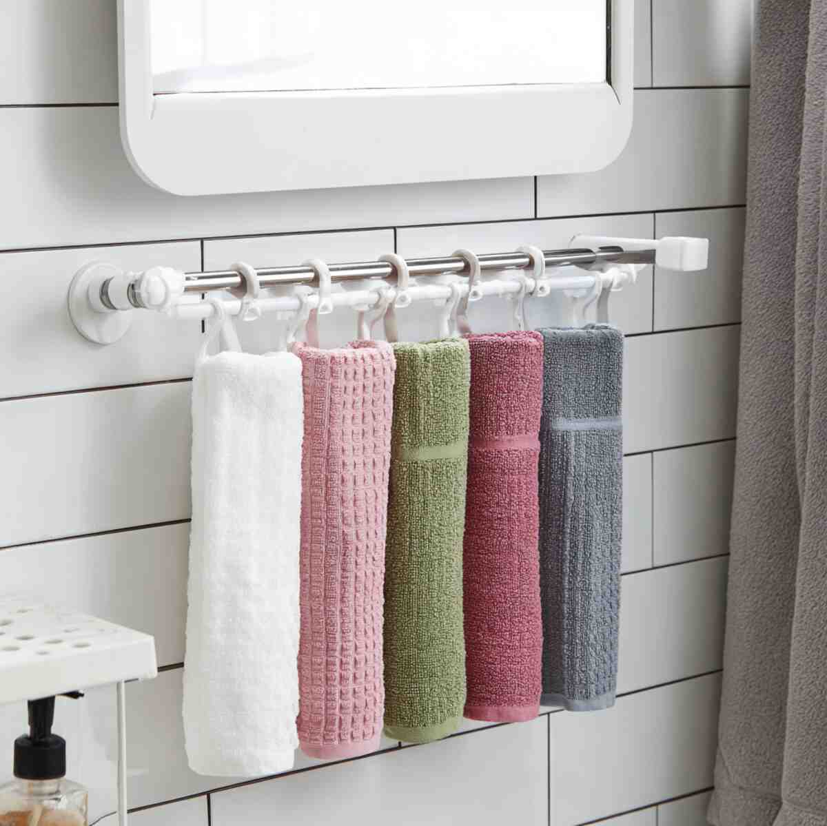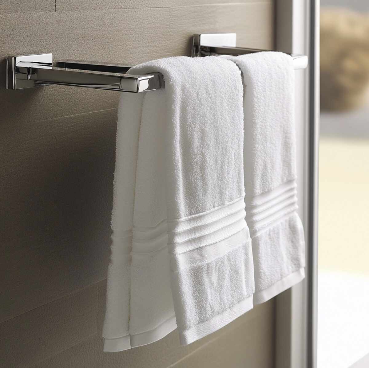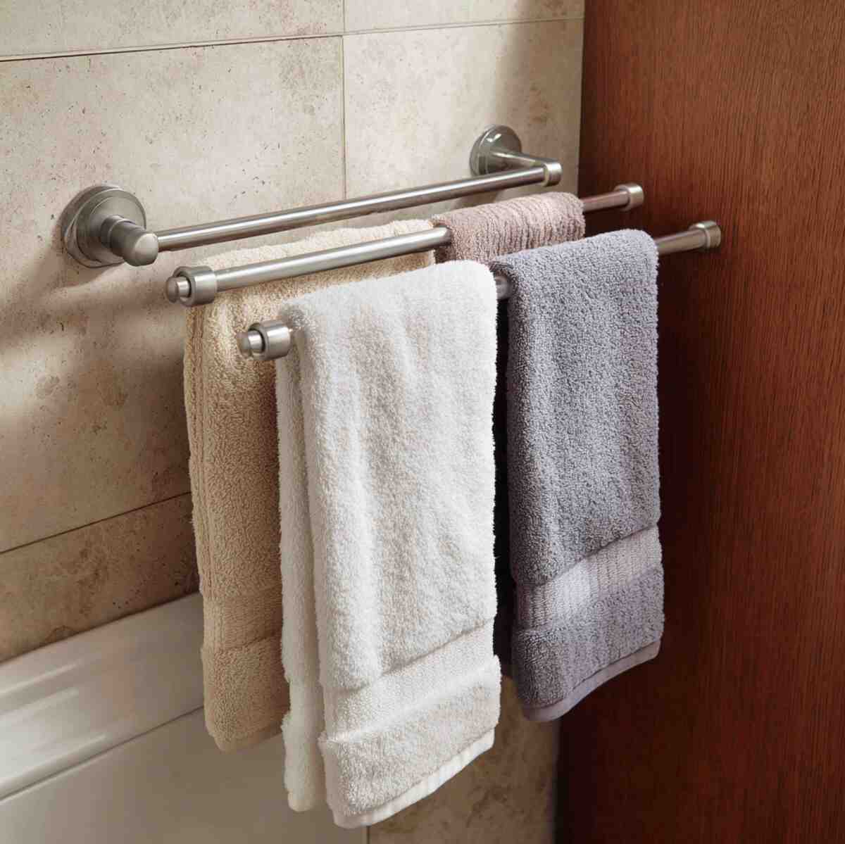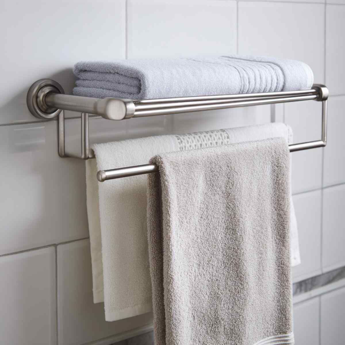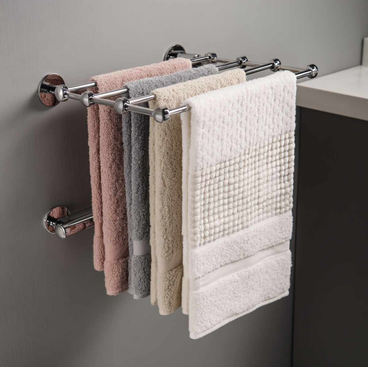 A double-layer towel bar allows two towels to hang in the same horizontal space, doubling capacity without increasing size.