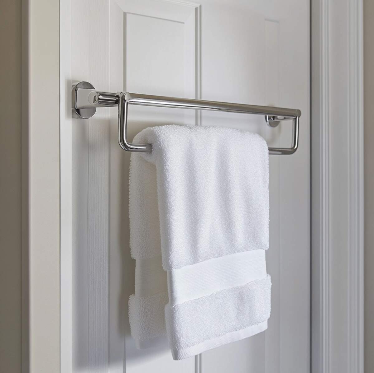 An over-the-door towel bar fits directly over your bathroom door, providing storage without using any wall space.