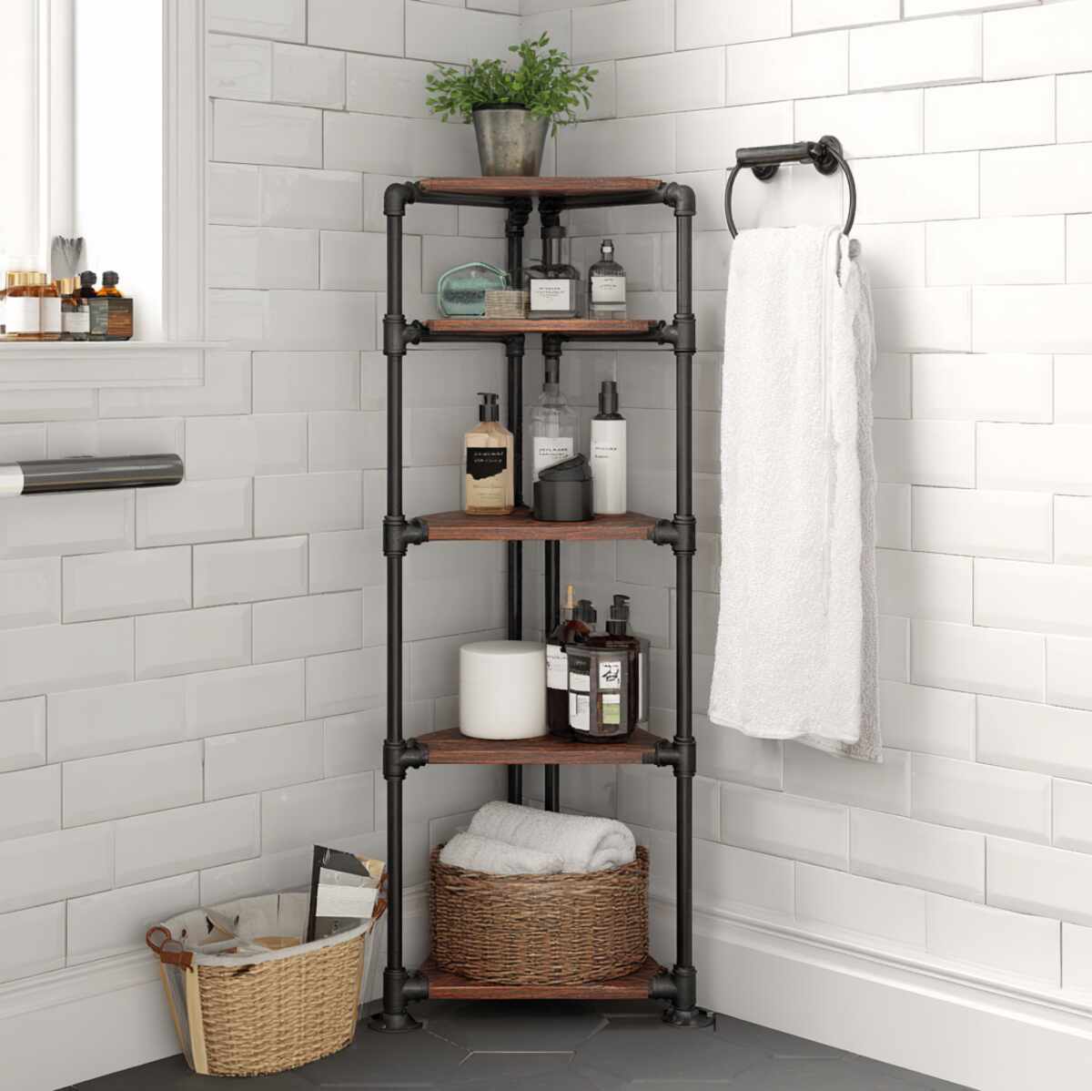 Industrial pipe designs are bold Corner Storage Tower Ideas for Bathrooms with a strong visual presence.