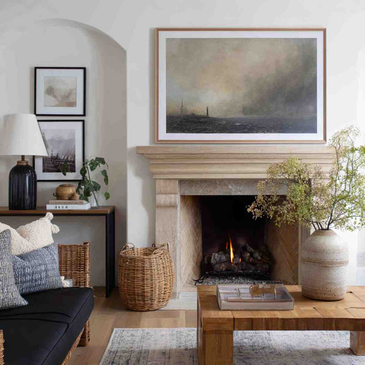 Their imperfections create a personal and cozy feel. These pieces make the mantel feel thoughtfully styled rather than overly designed.