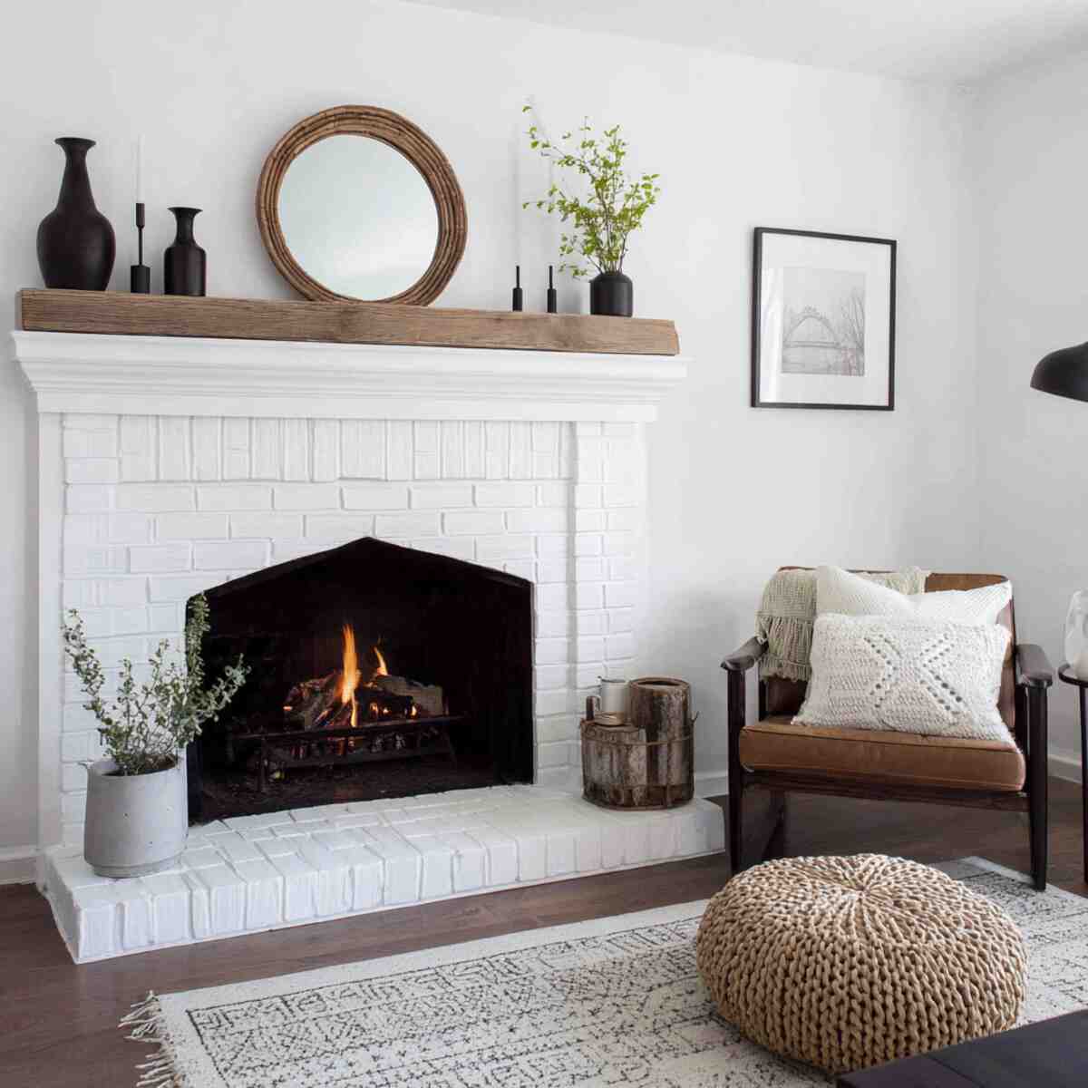 Vintage mirrors are popular Cozy Fireplace Mantel Styling Ideas as they reflect light and make the room feel warmer and larger.