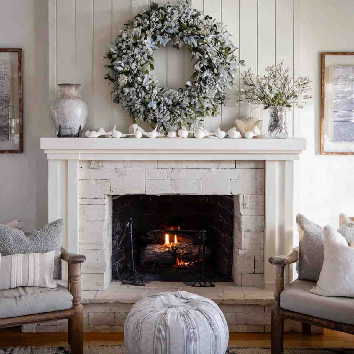 Seasonal wreaths are versatile Cozy Fireplace Mantel Styling Ideas that allow easy updates throughout the year.
