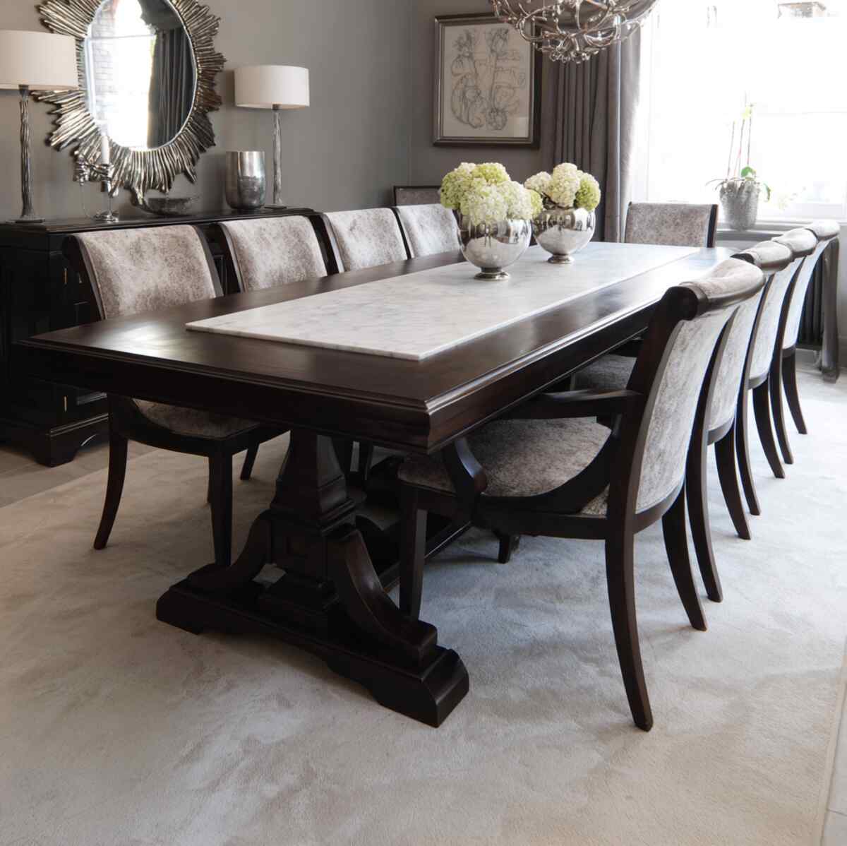 Adding a marble insert to a dark wood table creates a striking contrast. The stone detail adds texture and luxury while the wood keeps it grounded.