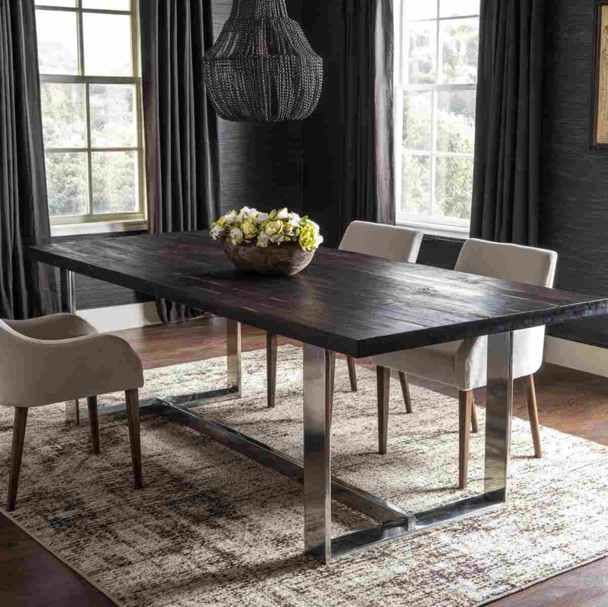 Mixing dark wood with sleek metal legs creates a modern, industrial-inspired design.