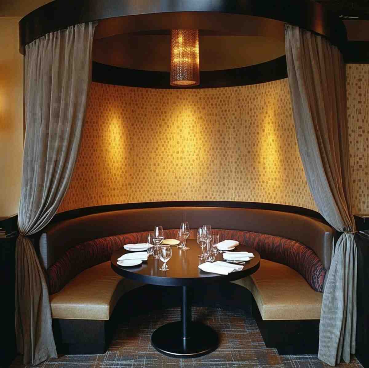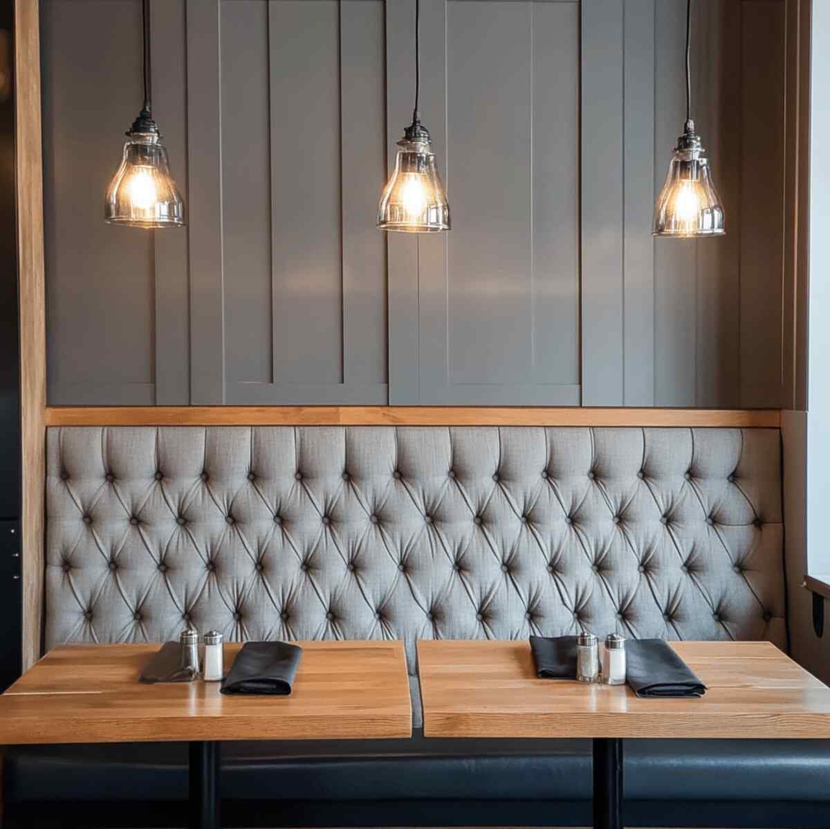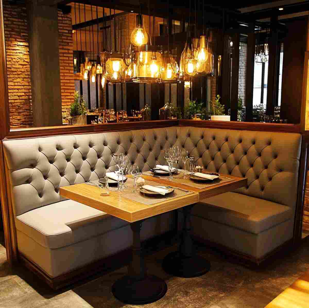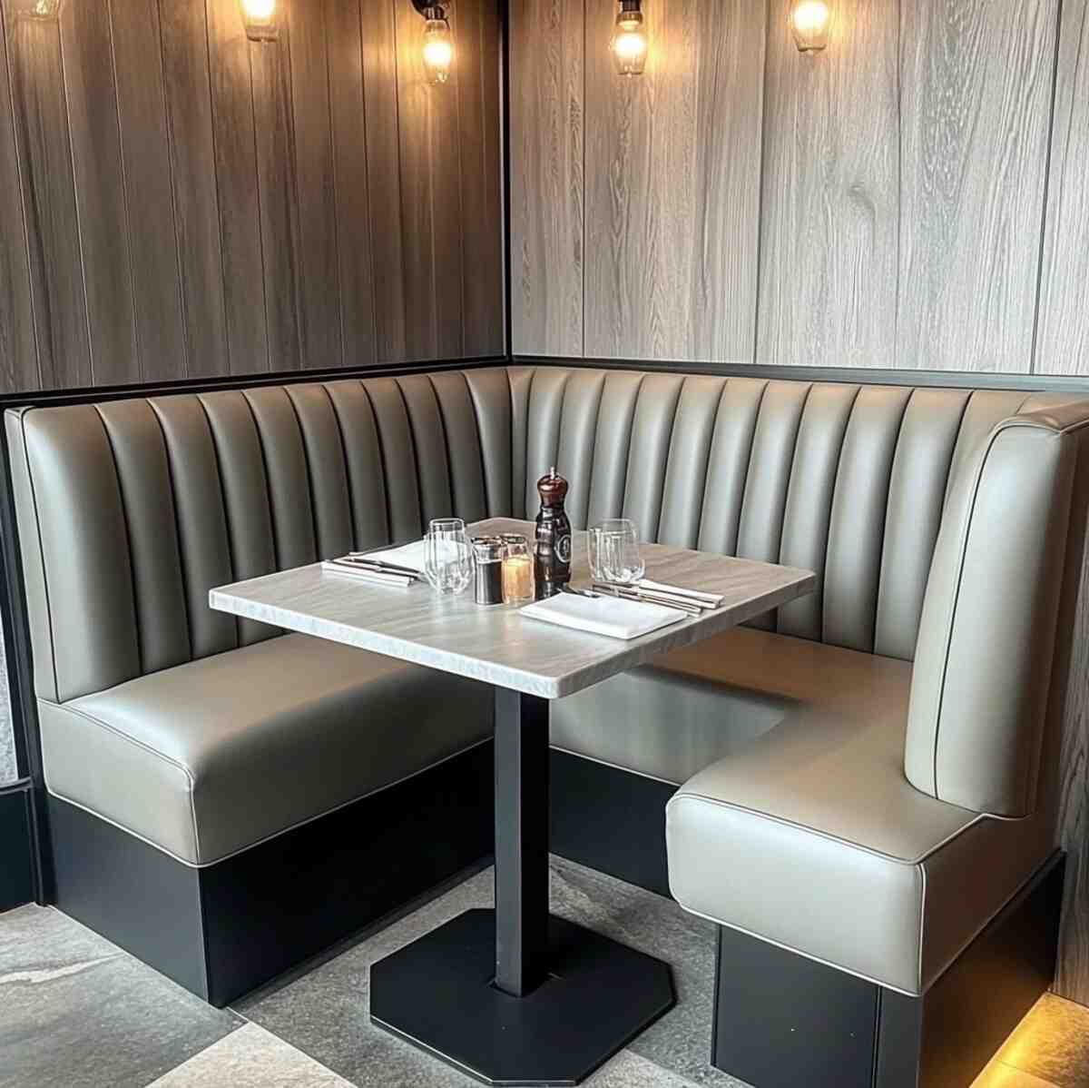 An L-shaped padded booth is a clever choice when exploring Cozy Dining Booth Seating Ideas for both comfort and space-saving.