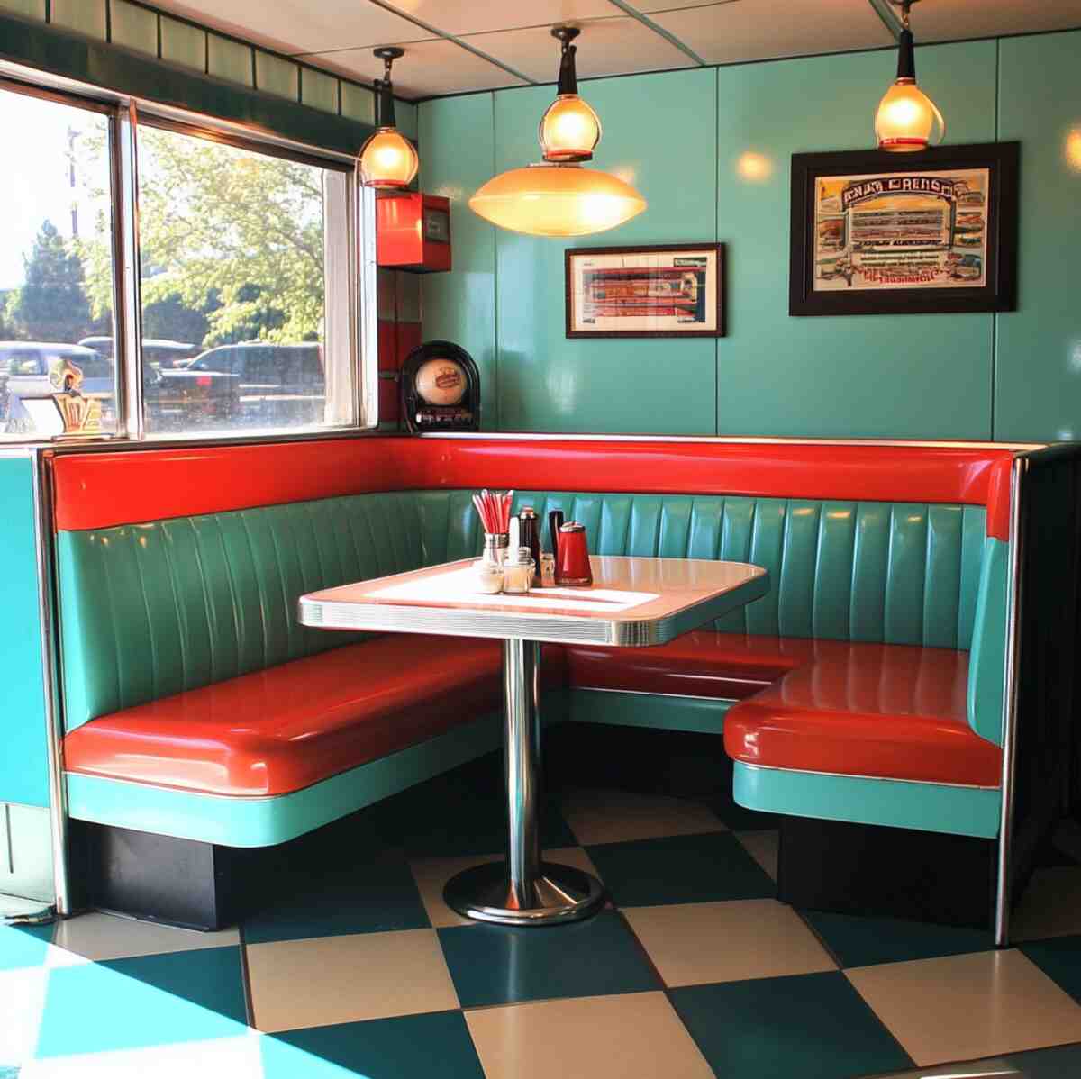 A vintage diner-style booth brings playful nostalgia to Cozy Dining Booth Seating Ideas.
