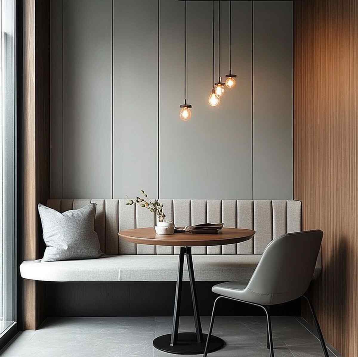 A modern minimalist booth focuses on clean lines and simple shapes, making it a smart option for contemporary Cozy Dining Booth Seating Ideas.