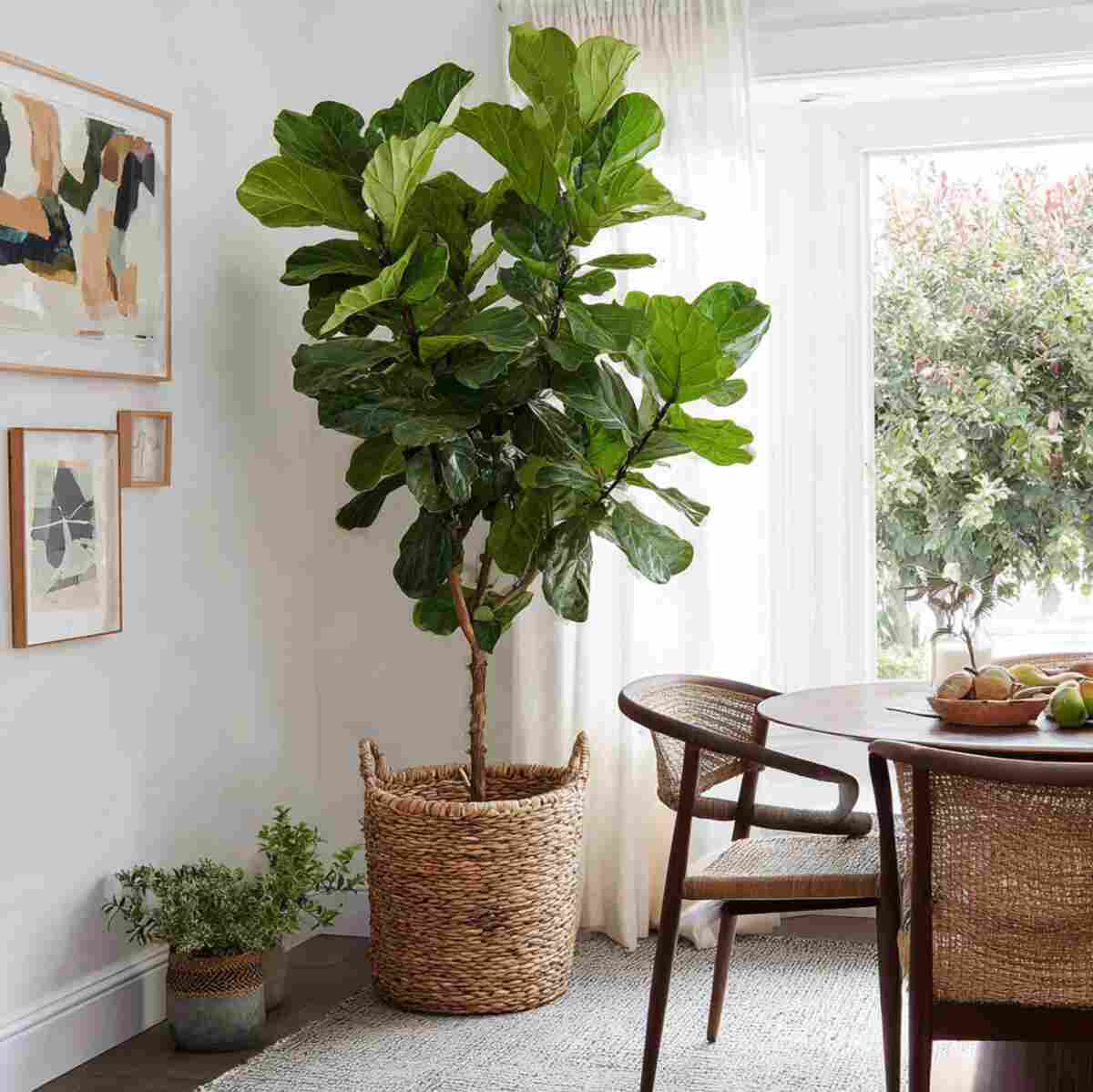 1. Tall Fiddle Leaf Fig in a Woven Basket