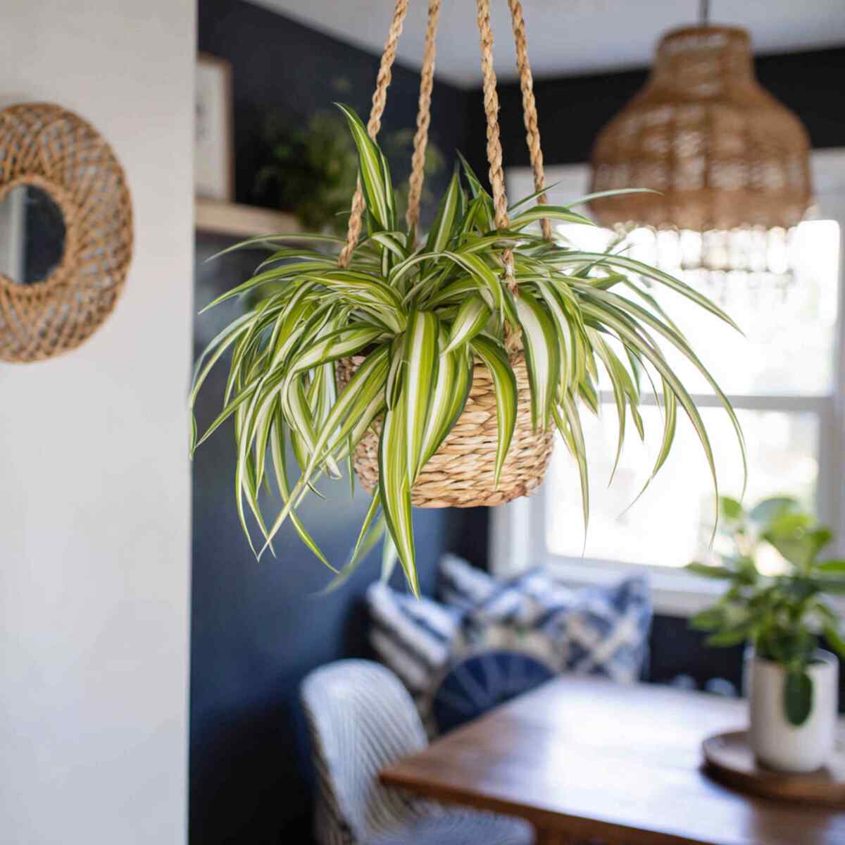 Spider plants bring a lively, cascading look that instantly refreshes dull dining corners.