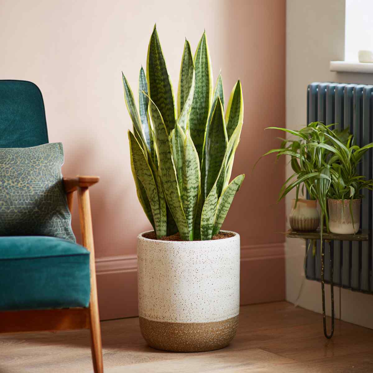The snake plant is one of the easiest Dining Room Corner Plant Ideas because it thrives in low light and needs little attention.